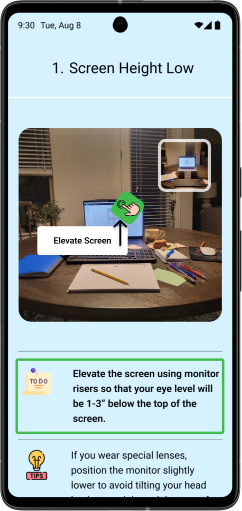 A UX/UI design project that guides remote workers to correctly set-up their workstations based on ergonomic principles.